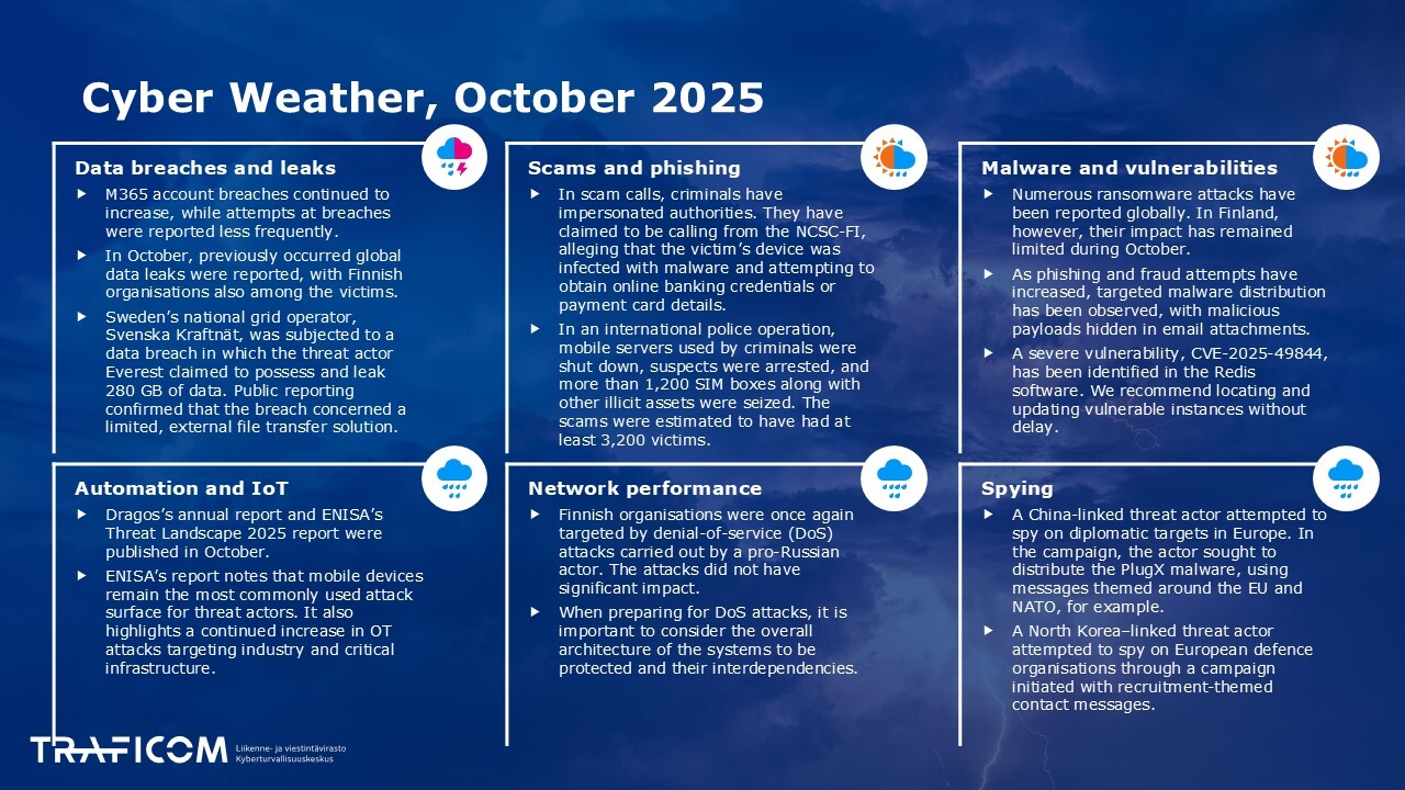 In Finland, reports related to Microsoft 365 account breaches remained higher than usual in October.